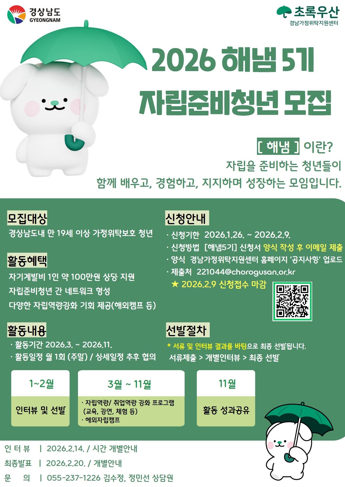 1. 모집대상: 경상남도내 만 19세 이상 가정위탁보호 청년